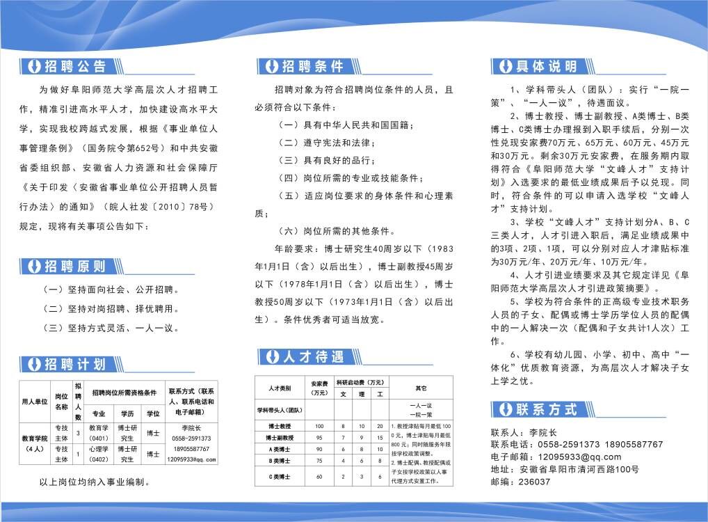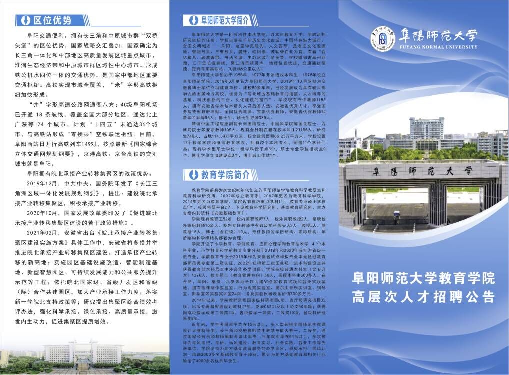 阜阳师范大学教育学院2023年招聘高层次人才4名公告