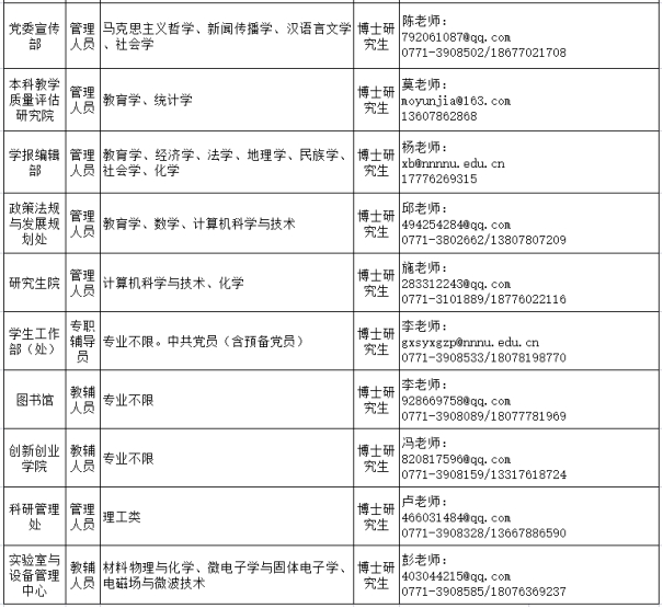 地址:广西南宁市明秀东路175号南宁师范大学人事处