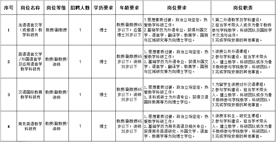 华中农业大学外国语学院2021年面向国内外公开招聘专任教师4名