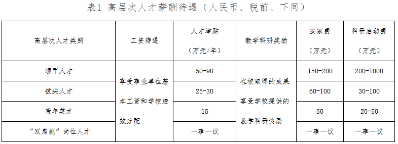 1、高层次人才按照《长沙理工大学“湖湘学者”人才计划实施办法》确定薪酬待遇(见表1),提供相应安家费和科研启动费,并提供免费过渡性住房保障。