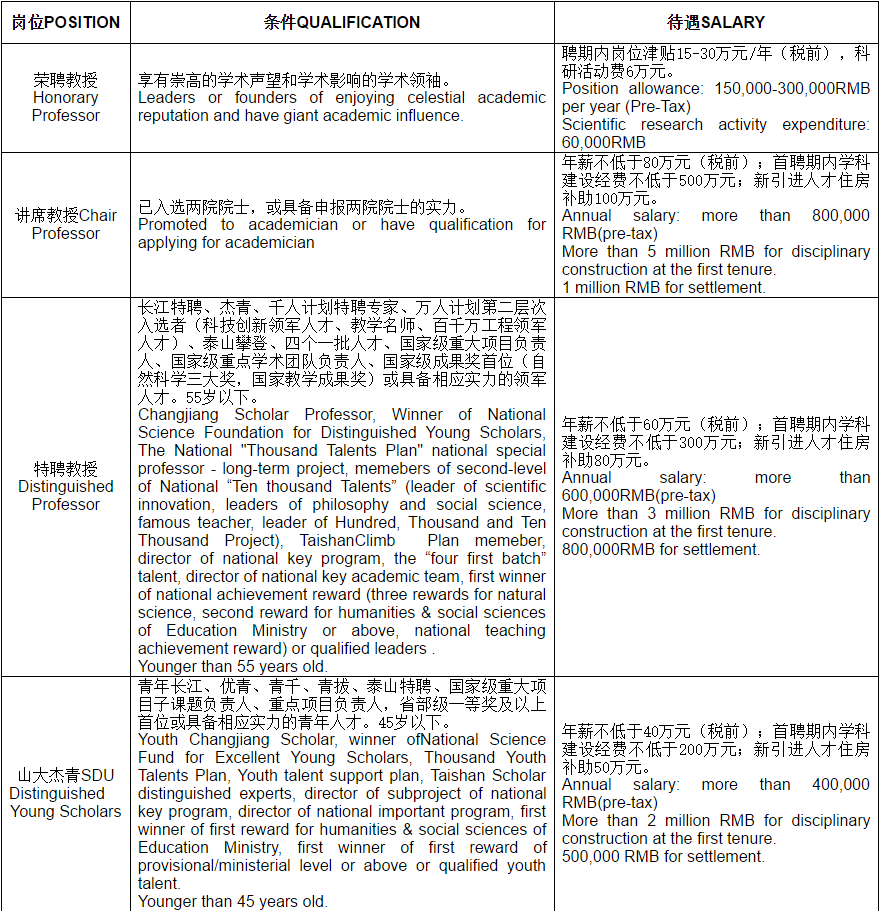 为加快世界一流大学和一流学科建设步伐,山东大学和齐鲁医学部制定了完善的杰出人才体系和一系列高层次人才引进计划,竭诚欢迎海内外英才加盟。