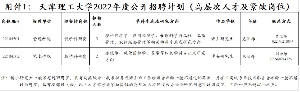 天津理工大学2022年度公开招聘高层次人才及紧缺岗位方案