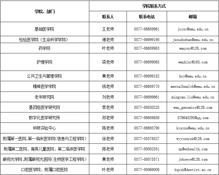 地址:浙江省温州茶山高教园区温州医科大学人事处 邮编:325035