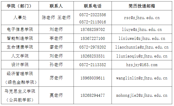 联系地址:浙江省湖州市学士路1号湖州学院人事处