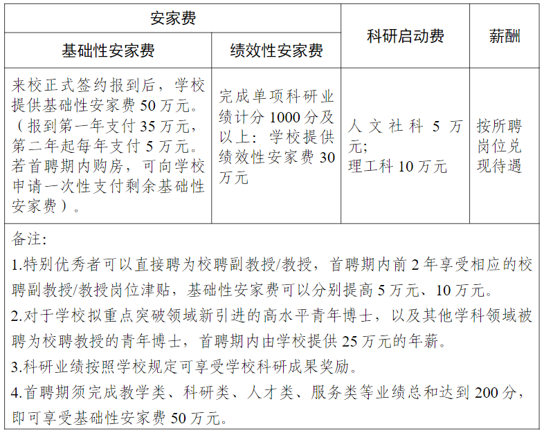 1.年薪含国家和学校规定的基本工资、绩效工资、各类津贴的总量,以及个人、单位需缴纳的五险一金;所涉薪酬、安家费均为税前。