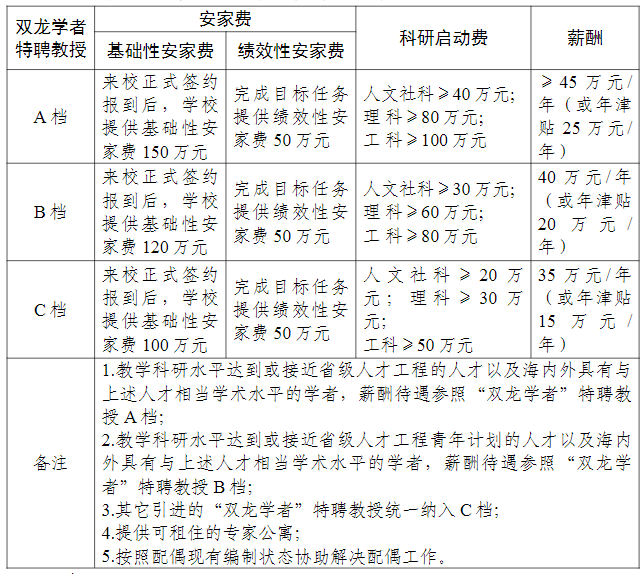 按照拟引进人员的教学科研水平分杰出教授、双龙学者特聘教授两大类引进。具体要求如下: