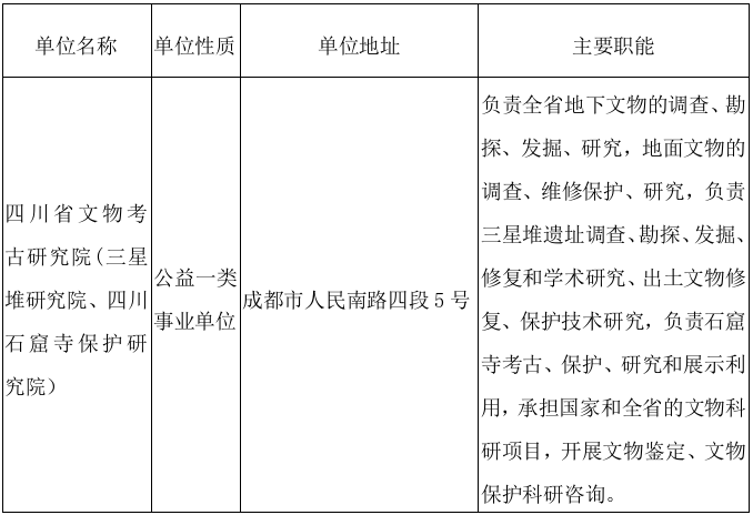 1.四川省文物考古研究院(三星堆研究院、四川石窟寺保护研究院)2023年公开考核招聘工作人员岗位和条件要求一览表